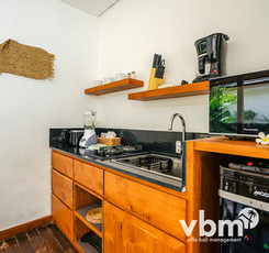 It has an open-air concept living area with a fully equipped kitchenette, perfect to cook some meals during your stay.