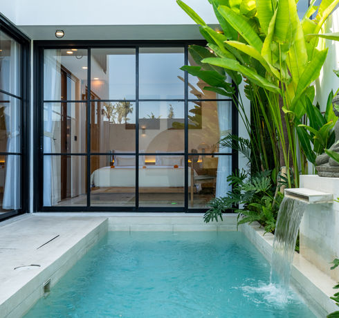 Villa Sevu 1 welcomes you with a private swimming pool right at the entrance, instantly setting the tone for a relaxing stay. The villa has a fresh tropical design giving you a clean, modern, and comfortable space from the moment you walk through the door.