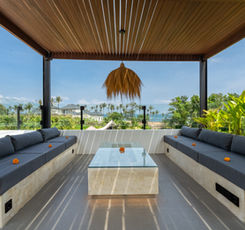 The rooftop level is the highlight of the villa, featuring a private pool with sweeping ocean views and a comfortable sitting corner to relax, read, or enjoy a drink while watching the sunset. This dedicated space allows for both quiet moments and memorable evenings under the stars.